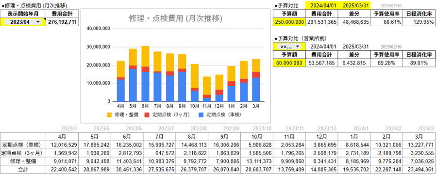 たとえば、ある車両で頻繁に起きていた故障パターンに気づき、メンテナンススケジュールの見直しを図ったり、年式や走行距離に対して修繕費が急激に増えている車両については計画的な入れ替えを検討したりするなど、数字に裏付けされた対策が可能になっています。