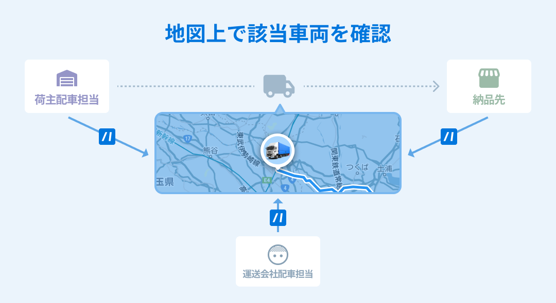 関係者が共通の位置情報・到着予測を確認が可能なので、問い合わせコストが削減し配送の品質が上がる
