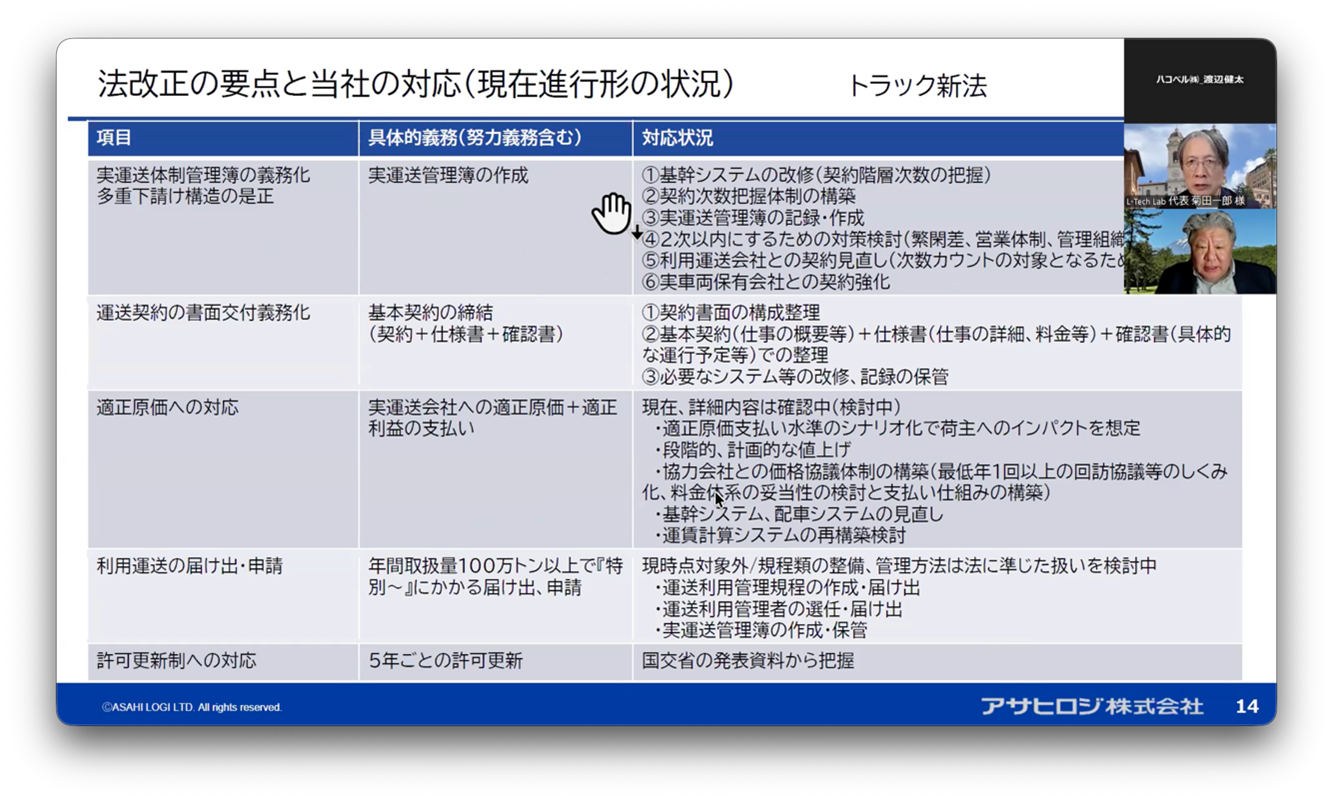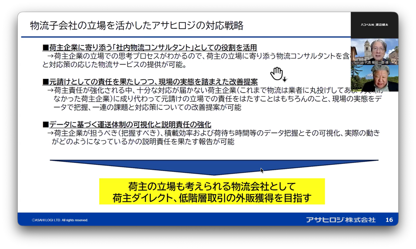 「アサヒロジグループは来年20周年を迎えます。この法改正の環境変化をピンチではなくチャンスと捉えることで、事業成長に目を向けていきたいと考えています」(島崎氏)