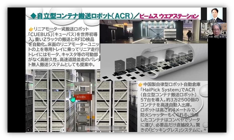化粧品EC企業のオルビスは、ピッキング支援搬送ロボットを330台導入。最適な運用のために商品の配置など週次でメンテナンスを行い、1台1オーダー処理で作業員約3割、出荷コスト約2割減を達成しました。倉庫会社のDPL平塚では自走型ロボットを約50台導入。1つのシステムでECの個配送と店舗向け配送の同時処理を実現し、従来比で約3倍の高密度保管、約3倍の注文処理を達成しました。アパレルのビームスはリニアモーター式搬送ロボットを世界初導入。重いZラックの搬送とRFID検品を自動化しました。さらに自律型コンテナ搬送ロボットを57台導入し、高速自動入出庫を実現しました。