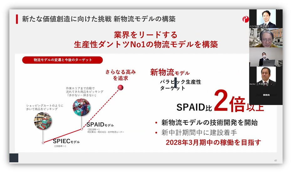各企業単独の最適解の追求から協働・共創の時代に突入した今、PALTACがめざすのはサプライチェーン全体の物流プロデュースです。和田氏は「業界をリードする生産性ダントツNo.1の物流モデルを作り上げ、今後はサプライチェーン全体を変革していきたい」と抱負を語りました。