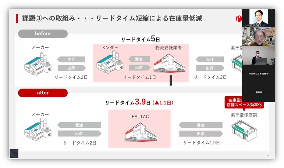 「これは従来存在していた物流をPALTAC様が統合・集約することによって、現場への負担を増やすことなく、リードタイムを短縮することができた、という取り組みといえます」(菊田氏)
