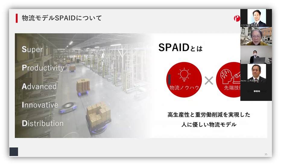 物流センターが今後も安定して稼働するには、女性や高齢者が働きやすい労働環境がますます重要になってきます。この点に早くから着目したPALTACは、物流センターの自動化・省人化・作業負荷軽減に取り組んできました。そして、物流ノウハウとAIやロボットといった先端技術を融合し、独自の物流モデル「SPAID」を開発しました。高い生産性と重労働削減を実現する、人に優しい物流モデルです。