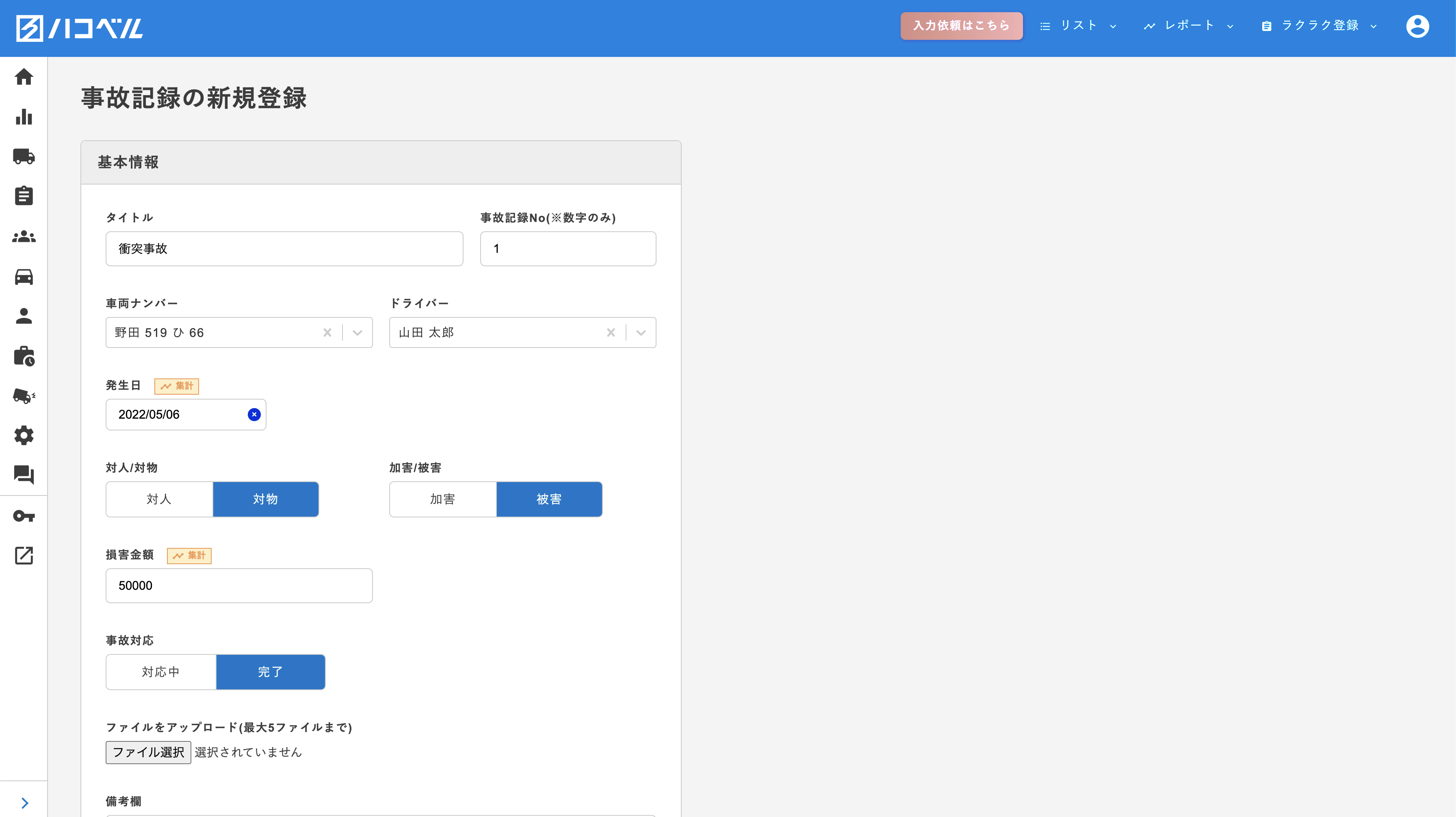 紙やExcelで管理している各種台帳情報(車両・ドライバー・事故など)をクラウドで一元管理