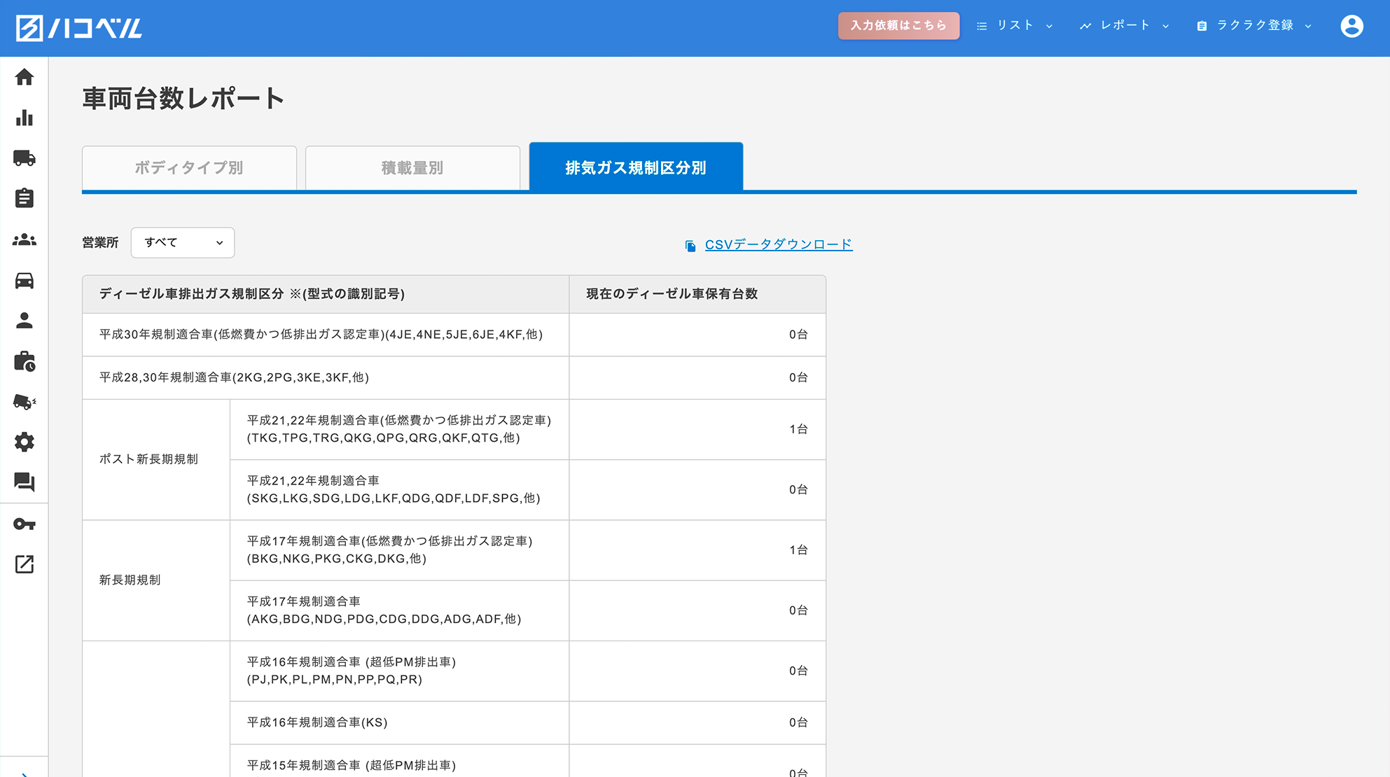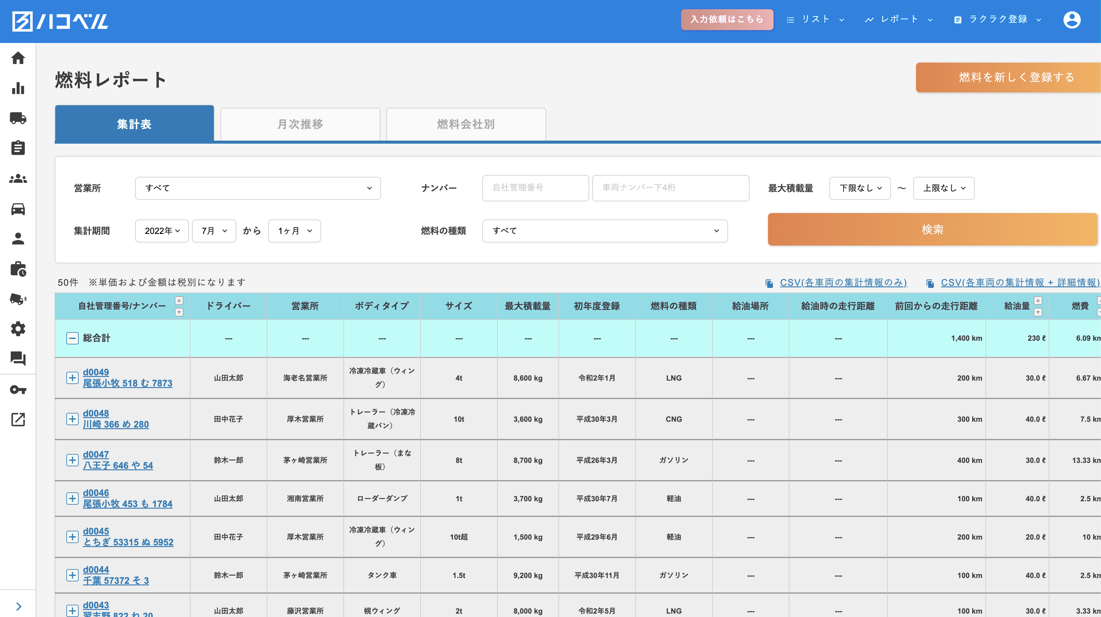 車両情報を基に、グリーン経営必要帳票データを自動集計