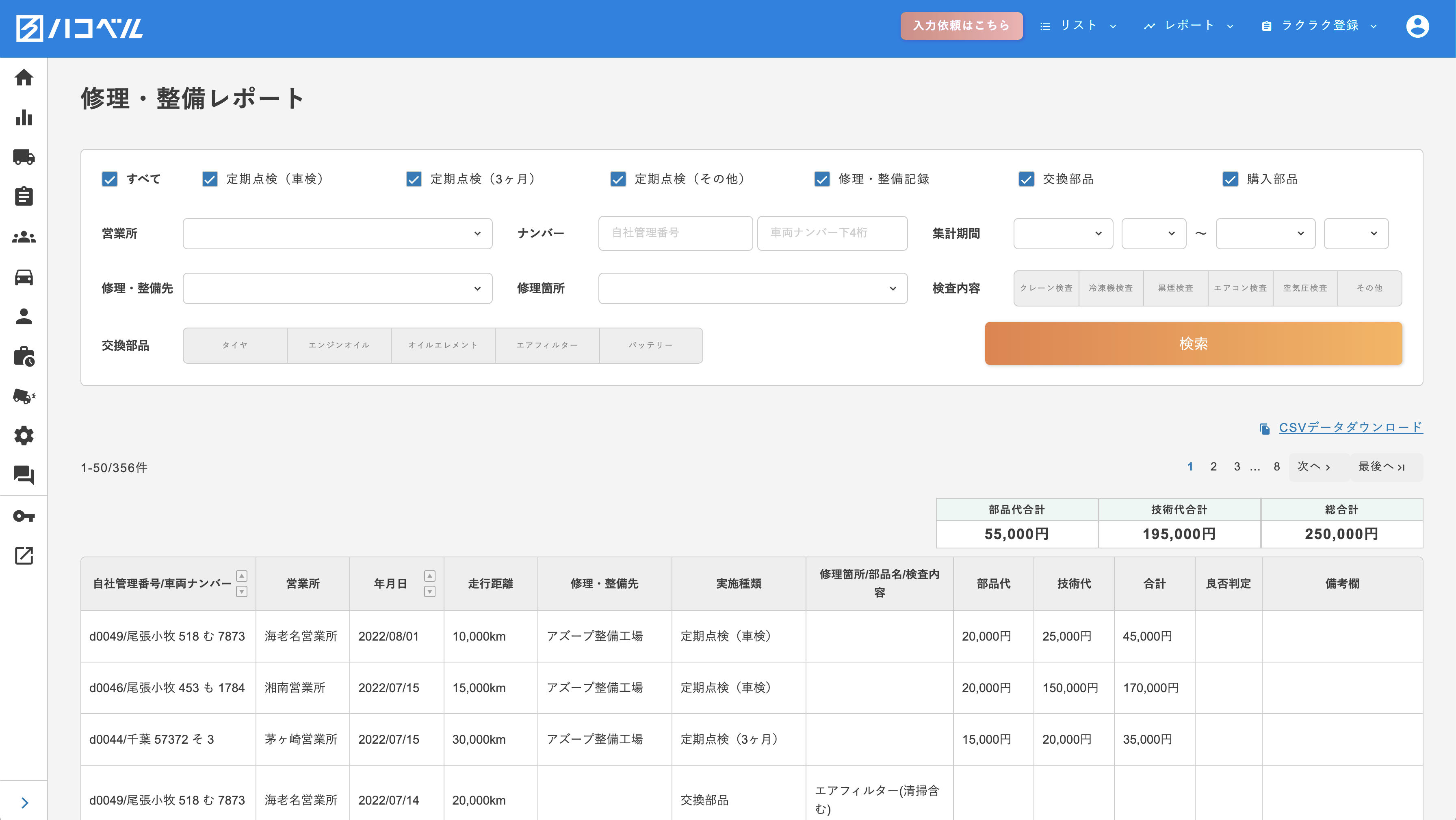 車両の修理・整備履歴を経年で残すとこができ、修繕費を即座に集計。過去の修理・整備履歴へのアクセス性を向上