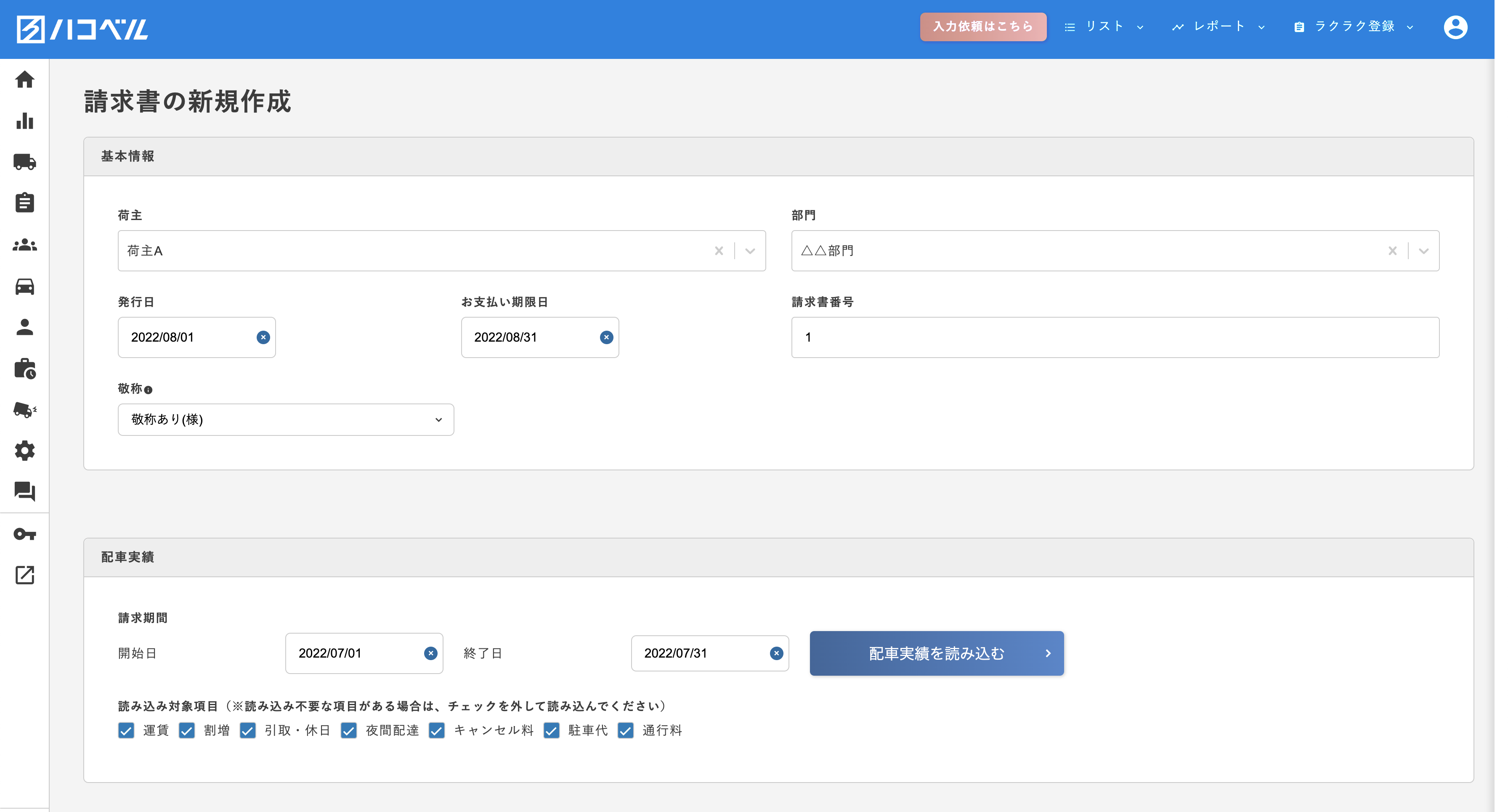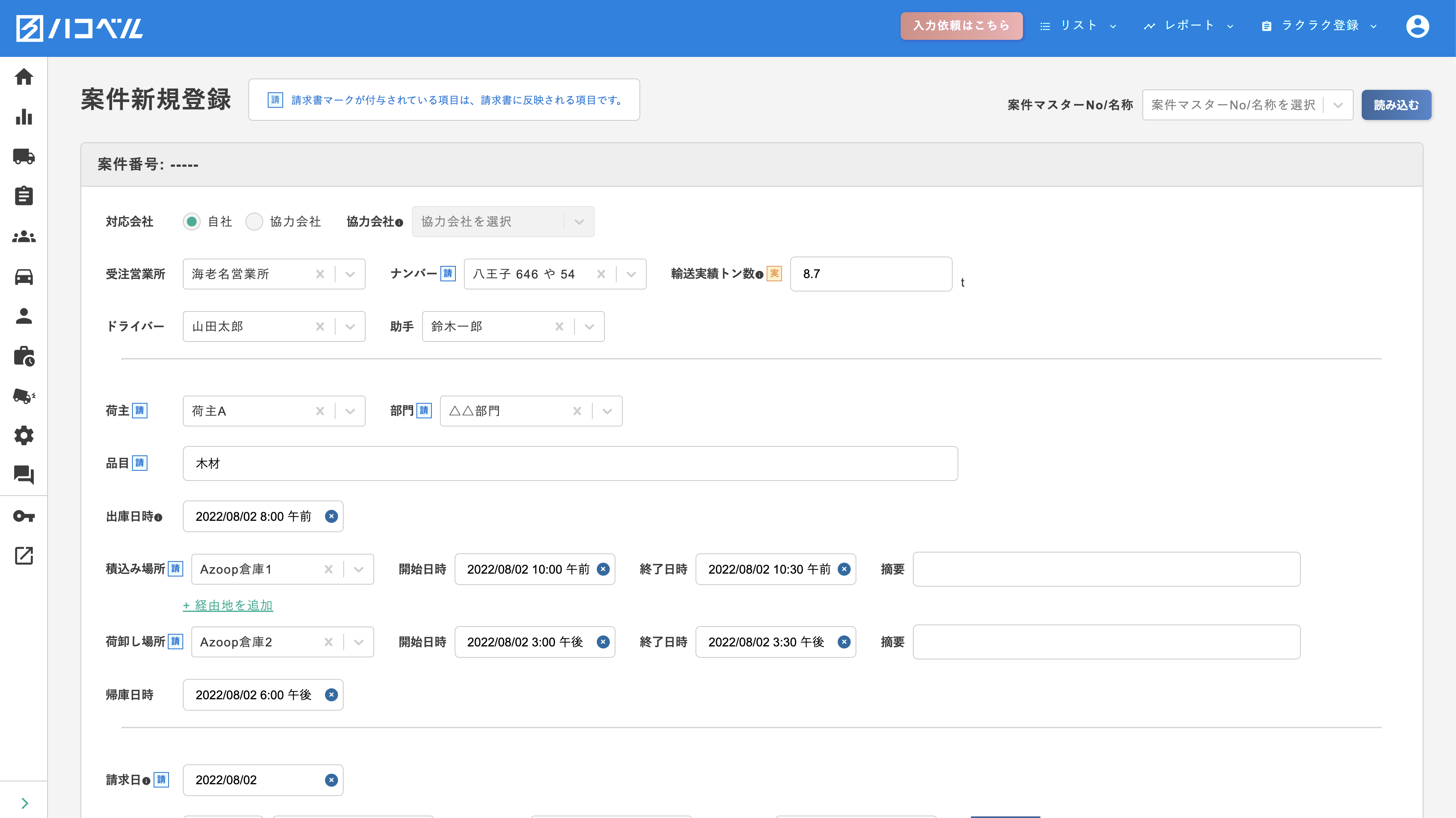 - 車両/ドライバー管理に加えて、配車・請求書作成まで全機能の利用を想定