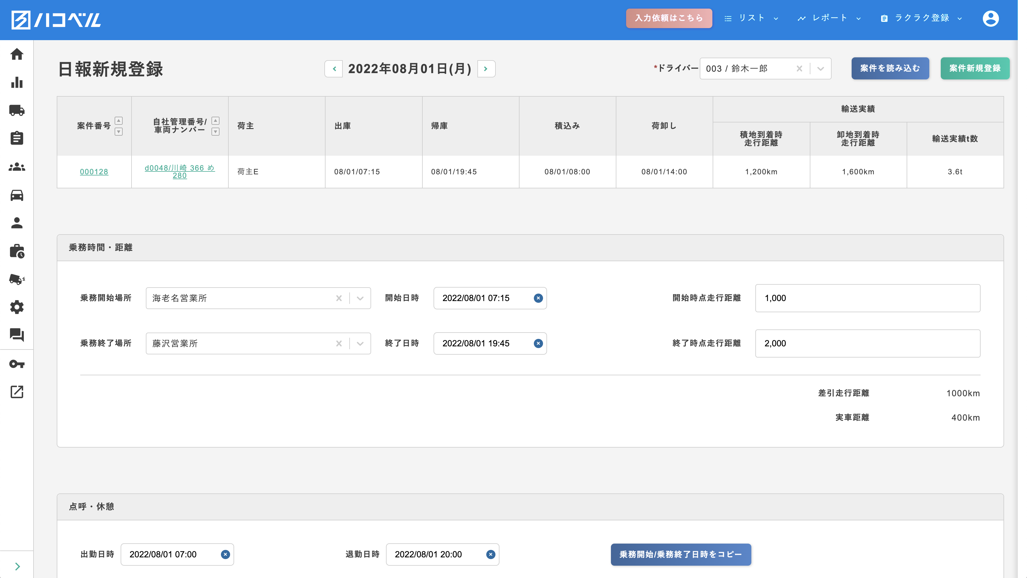 運転日報のデジタコ連携にも対応。労働時間を自動集計することができるので、管理対応も大幅に削減することが可能。